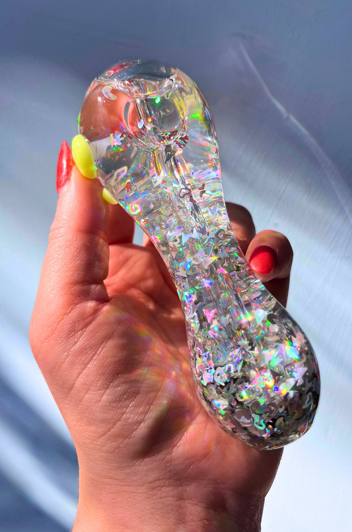 If you love glitter, sparkle, or anything that shines… this pipe is about to become your emotional support bowl.