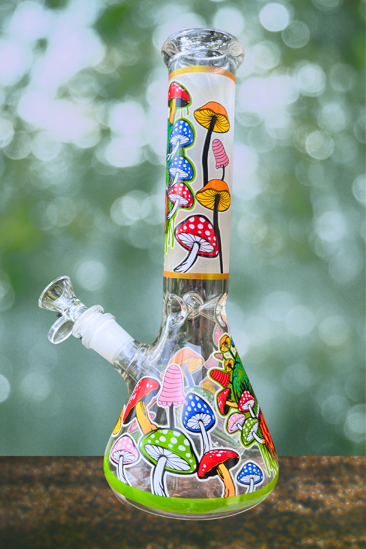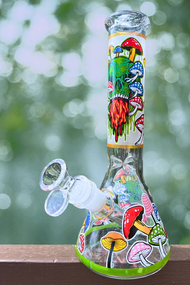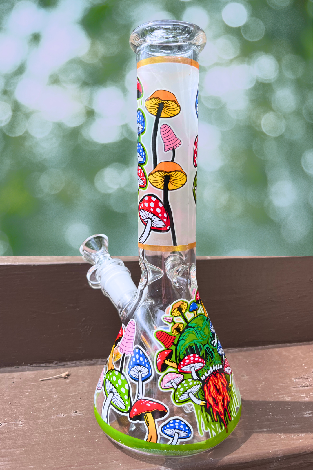 Elevate your smoke sesh with this beautiful, colorful beaker bong.  10" tall and packs a punch with a blown-in ice catcher.